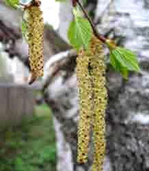 Береза повислая - однодомное дерево из семейства березовых, с белой корой, высотой до 20 метров. В нижней части ствола у старых деревьев появляются трещины с черной окpaской. Листья треугольно-ромбические, двоякопильчатые, ветви повислые. Цветет береза в апреле - мае. Сережки мужские и женские.